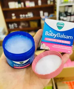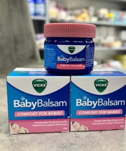 Vicks Baby Balsam được bào chế dành riêng cho trẻ sơ sinh từ 3 tháng tuổi trở lên. Nó được làm từ chiết xuất Nha đam và Dầu dừa giúp dưỡng ẩm. Vicks Baby Balsam cũng chứa hương thơm dịu nhẹ của Bạch đàn, Hương thảo và Oải hương để làm dịu và thư giãn cho bé.
