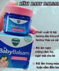 Baby balsam hay dầu baby balsam là sản phẩm dầu bôi giữ ấm của Úc. Sản phẩm này được sản xuất bởi tập đoàn P&G nổi tiếng. Sản phẩm với mùi hương nhẹ, dễ chịu nên phù hợp dùng hàng ngày cho bé đặc biệt đối với những bé nhỏ tháng tuổi. Một chút dầu thoa vô ngực sẽ khiến bé ngủ ngon hơn (do hiệu quả thư giãn của hoa oải hương).