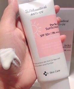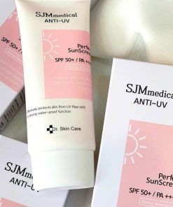 – Kem chống nắng SJM Hàn Quốc đến từ thương hiệu mỹ phẩm Dr.SkinCare. Với kết cấu ở dạng tinh chất màng nước trong suốt nên khi apply lên da, kem chống nắng SJM thẩm thấu nhanh, không gây bết dính và mang lại làn da ẩm mịn, mềm mại. Với khả năng nâng tone nhẹ nhàng, hiệu chỉnh màu sắc của da nên có thể dùng kem chống nắng SJM thay thế lớp nền trang điểm.