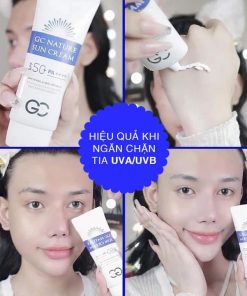 • Kem chống nắng GC Nature Sun Cream chứa màng lọc chống nắng vật lý và hoá học với chỉ số SPF 50+/PA++++ giúp bảo vệ làn da toàn diện khỏi tác hại của ánh nắng mặt trời: