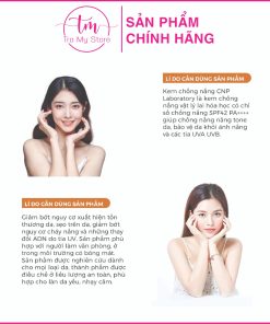 Kem chống nắng CNP Laboratory là kem chống nắng vật lý lai hóa học có chỉ số chống nắng SPF42 PA+++ giúp chống nắng nâng tone da, bảo vệ da khỏi ánh nắng và các tia UVA UVB. Giảm bớt nguy cơ xuất hiện tổn thương da, sẹo trên da, giảm bớt nguy cơ cháy nắng và những thay đổi ADN do tia UV.