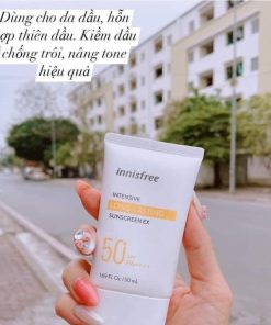 Kem Chống Nắng innisfree Lâu Trôi Cho Da Dầu, Hỗn Hợp Intensive Long Lasting Sunscreen Ex SPF50+ PA++++ chiết xuất từ rau má và trà xanh, có khả năng chống nước, giúp nuôi dưỡng và bảo vệ da tốt hơn khỏi tia UV.
