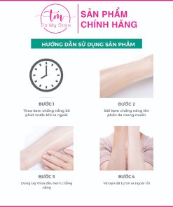 Thành phần: Ethylhexyl Methoxycinnamate, Butylene Glycol, Sodium Hyaluronate, Titanium Dioxide, Diethylamino Hydroxybenzoyl Hexyl Benzoate, bột ngọc trai siêu mịn, chiết xuất vitamin C, chanh dây và mận đã qua thủy phân