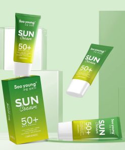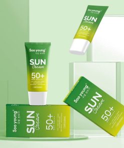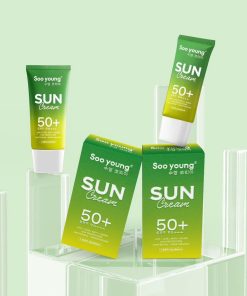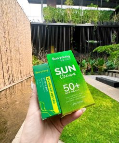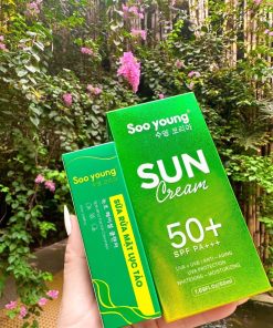 Thành phần trong 1 týp kem chống nắng vật lý Soo young gồm: Water, cetyl alcohol, butylene glycol, propylene glycol, glycerin, titanium dioxide, zinc oxide, tocopheryl acetate, niacinamide, collagen……