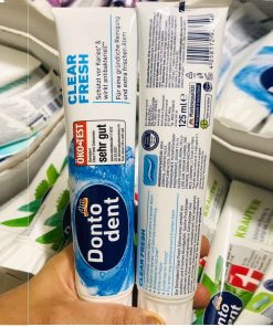 - Dontodent Clear Fresh: Cho hơi thở thêm tươi mát, nhẹ nhàng loại bỏ mảng bám cứng đầu từ răng. Bảo vệ hữu hiệu các bệnh về răng lợi, giúp chống viêm ,ngăn ngừa chảy máu nướu