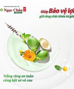 Tăng cường bột xơ từ vỏ quả cau, giúp răng trắng sáng an toàn, chắc khoẻ tự nhiên. Đồng thời vẫn giữ được các tác dụng ưu việt của Kem đánh răng dược liệu Ngọc Châu nói chung như góp phần: khử mùi hôi miệng, bảo vệ lợi, giữ chắc chân răng, góp phần ngăn ngừa: nhiệt miệng, chảy máu chân răng.