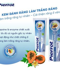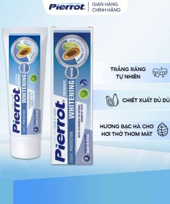 Kem đánh răng Pierrot làm trắng răng 75ML giúp làm sạch sâu và cho hàng răng trắng sáng. Với hàm lượng papaine được chiết xuất từ đu đủ sẽ làm sạch mảng bám giúp răng sạch sẽ, trắng sáng. Fluoride ngăn ngừa sự hình thành cao răng và chống sâu răng hiệu quả. Sản phẩm cho hơi thở thơm mát.