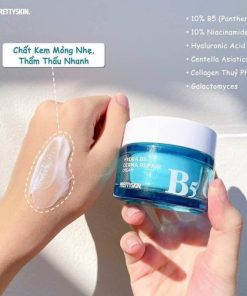 Kem dưỡng Pretty Skin Hydra B5 Derma Repair Cream chứa Vitamin B5 và Hyaluronic acid giúp cung cấp độ ẩm cho da, làm tăng khả năng giữ ẩm và tăng cường độ đàn hồi cho da.