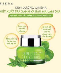 Kem dưỡng Orjena chiết xuất trà xanh và rau má là sản phẩm nằm trong bộ sưu tập chăm sóc da cơ bản hàng đầu "Tea Tree Cica" đến từ thương hiệu Orjena của Hàn Quốc. Bộ sưu tập gồm có 4 sản phẩm chính: Nước hoa hồng, sữa dưỡng, serum và kem dưỡng.