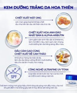 Kem Dưỡng Trắng Da Hoa Thiên kết hợp cả hai cơ chế bên trong lẫn bên ngoài đem lại hiệu quả tối ưu trong việc dưỡng da trắng sáng, mịn màng, tươi trẻ.