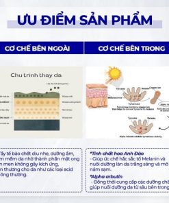 → Alpha Arbutin: Đồng thời cung cấp các dưỡng chất giúp nuôi dưỡng da từ sâu bên trong.Chứng minh lâm sàng từ nhà cung cấp ORYZA OIL & FAT CHEMICAL CO.,LTD (Nhật Bản) về tác động tuyệt vời trên làn da của chiết xuất Hoa Anh Đào:
