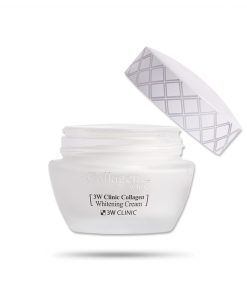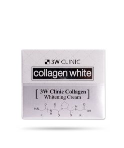 - Kem dưỡng trắng da 3W Clinic Collagen White là loại kem giàu dinh dưỡng chứa các thành phần làm trắng, Niacin giúp giữ cho làn da luôn trắng sáng, làm mờ các vết thâm, nám, tàn nhang sạm đáng ghét trên khuôn mặt bạn do thời gian và một số nguyên nhân khác gây nên.