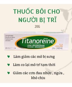 Kem bôi trĩ Titanoreine của Pháp giúp làm giảm các biểu hiện như ngứa, đau rát và sung huyết do trĩ gây nên. Bên cạnh đó, sản phẩm còn giúp hỗ trợ co búi trĩ.