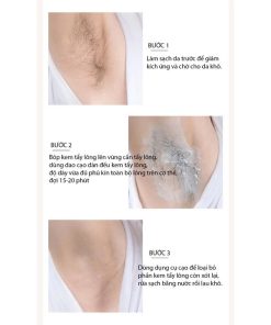 B2: Lau khô da, thoa 1 lớp kem vừa đủ thoa kín, phủ kín vùng lông cần tẩy và massage trong 30 giây