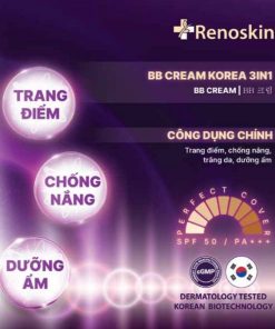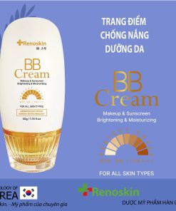 Kem trang điểm và chống nắng BB Cream Renoskin. Là kem Trang điểm Hàn Quốc đa chức năng chống nắng với SPF 50 PA++++ và giúp làn da trắng sáng cũng như dưỡng ẩm.
