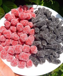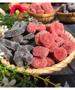 Vị chua nhẹ ngọt thanh của lớp đường bên ngoài, giúp cân bằng vị giác. Kẹo dâu tây dâu tằm được chế biến từ những trái dâu chín mọng, có màu sắc bắt mắt.