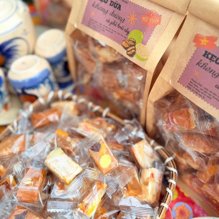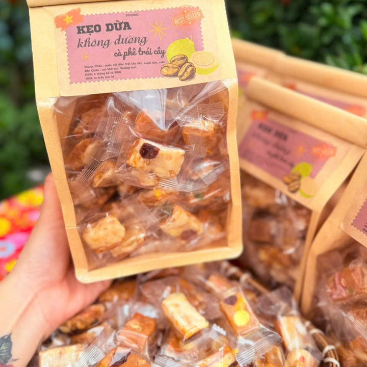 #KẹoDừaKhôngĐường #KẹoDừaCafeTráiCây #ĐặcSảnBếnTre #KẹoDừaMiềnTây #NgọtThanhTựNhiên #ĂnVặtLànhMạnh #ĐồNgonBếnTre #KẹoDừaNgon