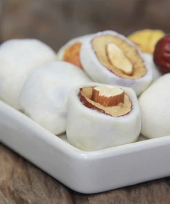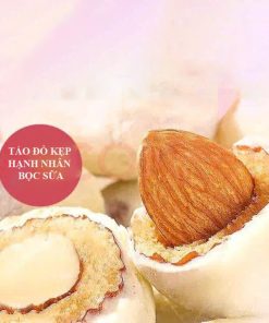 Quả Táo đỏ Tân Cương được lấy hạt và nhồi hạt hạnh nhân bên trong. Và được bao phủ bằng bơ sữa, phô mai bên ngoài . Khi ăn sẽ có bị béo ngậy của táo đỏ hoà quyện với vị giòn bùi và vị ngọt của sữa bơ cho bạn cảm giác ngon khó tả.