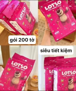 Khăn lau đa năng gấu dâu LOTSO bịch 200 tờ mềm mại êm ái