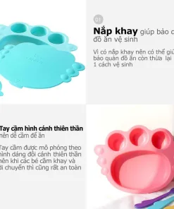- Sản phẩm gồm: Khay ăn dặm, đế dính silicone và nắp đậy, sản phẩm bám dính siêu chắc chắn chống lật, chống đổ rất tốt luôn ạ.