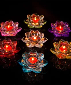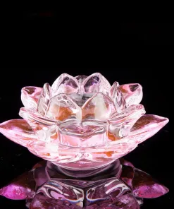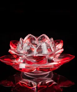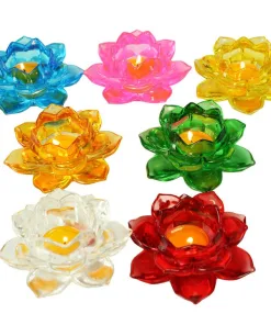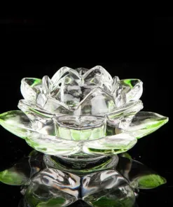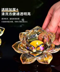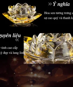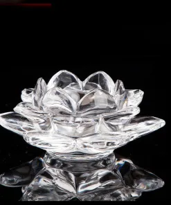 Được làm từ thủy tinh trong suốt, đế nến hoa sen giúp trang nghiêm ban thờ Phật, cúng dường ánh sáng lên chư Phật.Đế nên Hoa Sen Pha Lê là đế đựng nến viên hoặc nến cây.