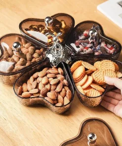 Hộp có nhiều ngăn, giúp bạn đựng được nhiều loại bánh kẹo, hạt khác nhau.