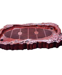 Khay trà được làm từ nhựa cao cấp. Màu sắc gỗ tự nhiên, bền đẹp. Khay trà này thuộc dòng khay trà có kích thước không quá lớn hoặc quá nhỏ, đa số phù hợp với phòng khách của người Việt.Phù Hợp với những bộ ấm chén cối xay hoặc bộ ấm chén theo phong cách Trung Hoa không dùng đĩa đựng chén.