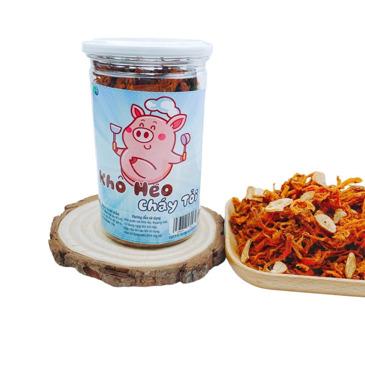 Tên sản phẩm: KHÔ HEO CHÁY TỎI – HŨ 180G & 250G