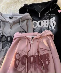 KHOÁC NỈ NGOẠI DÂY KÉO FORM RỘNG CHỮ CCORR MAK31 – MIN CORNER