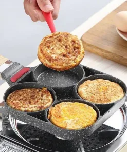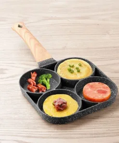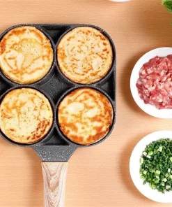 ✍Khuôn Chảo Chiên Rán Trứng Làm Bánh 4 Ngăn 4 Lỗ Chống Dính- Chống Dính Tay Cầm Gỗ