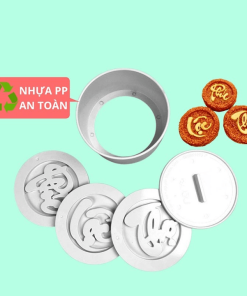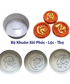 - Đóng gói: Bộ khuôn bao gồm: 1 vỏ khuôn + 3 nắp chữ Phúc / Lộc / Thọ + 1 nắp nén xôi