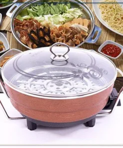 Chảo lẩu điện với lớp men đá hoa cương siêu chống dính, có tính năng nướng không khác gì bạn ăn đồ nướng trong các nhà hàng, đặc biệt hơn là dễ dàng rửa sau khi bạn có một bữa ăn nướng thú vị.