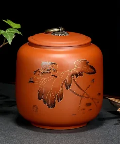- Chất đất tử sa rất đẹp. Họa tiết hoa văn sắc nét. Lọ đựng trà với chất liệu vừa sang trọng, vừa phù hợp với mọi không gian phòng ăn.