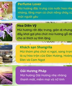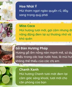 – Thành phần: Dầu thơm tổng hợp của các loại hoa.