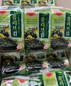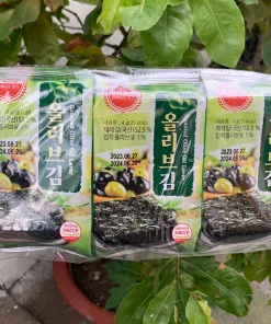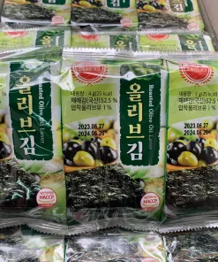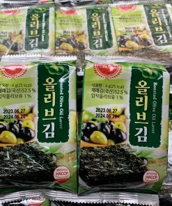 Rong biển olive Gwangcheon Haejeo giòn giòn, thơm ngon là một trong những sản phẩm được chế biến từ một loại rong biển tươi. Rong biển được sấy khô, pha trộn cùng các loại gia vị khác tạo nên món ăn vặt tuyệt vời dành cho tất cả mọi người, kể cả người ăn chay.