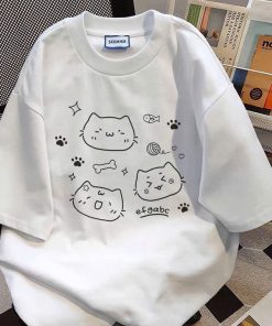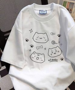 – Tên Sản phẩm: Áo phông form rộng tay lỡ chất vải cotton , áo cổ tròn nam nữ unisex – Hình 3 con mèo trắng