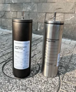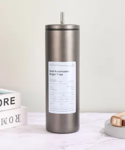 Lớp decan in chìm không phải giấy dán nha các bác. Cốc kèm sẵn ống hút inox.