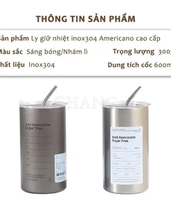 - Tên sản phẩm: Ly Giữ Nhiệt INOX Cao Cấp 600ml Kèm Ống Hút – Americano