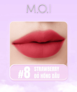 Son tint lì M.O.I Cotton Candy NO.08 Strawberry – Đỏ Hồng Dâu với tông màu đỏ hồng dâu toát lên vẻ đẹp ngọt ngào , nữ tính và sang chảnh. Chất son nhẹ tựa như bông, đánh như không đánh, môi nhẹ tênh dù thoa chồng bao nhiêu lớp.