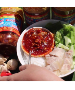 Món này thường được ăn kèm với thịt ba chỉ luộc và rau sống, dưa leo, dưa giá,…