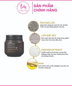 Mặt nạ bùn Innisfree Volcanic Pore Clay Mask có tên gọi rất đặc biệt được lấy ý tưởng từ ngọn núi lửa trên đảo Jeju xinh đẹp. Chất nham thạch trong núi lửa có rất nhiều tác dụng tốt với làn da như kiềm dầu, kiểm soát bã nhờn, loại bỏ các chất độc hại khỏi da. Chính vì vậy mà hãng Innisfree đã nghiên cứu và cho ra đời dòng mặt nạ đất sét Innisfree 2x với thành phần có chứa 6,020 mg đất sét từ núi lửa Jeju. Mặt nạ bùn Innisfree Super Volcanic Pore Clay Mask giúp bạn giải quyết hoàn toàn vấn đề lỗ chân lông to, mụn đầu đen trả lại bạn một làn da mịn màng trắng sáng.