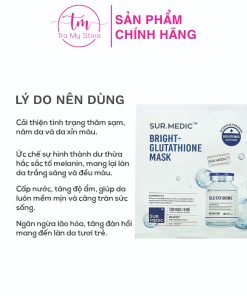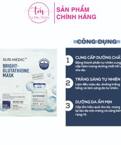 Mặt Nạ Dưỡng Trắng Sur.Medic Bright Glutathione Mask Hàn Quốc là sản phẩm hỗ trợ dưỡng trắng chuyên sâu và hàm lượng tinh chất cho hiệu quả dưỡng trắng lâu dài. Chiết xuất từ thành phần thiên nhiên, kết hợp với hàm lượng tinh chất riêng biệt cung cấp dinh dưỡng tối ưu cho da. Đẩy lùi ức chế melanin, giúp dưỡng da mịn màng và luôn căng bóng.