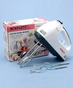 Máy đánh trứng nhào bột đánh cháo cầm tay SCARLETT HE-133 kèm que nhào bột được trang bị bốn que, gồm hai que dùng để trộn và hai que nhào được làm hoàn toàn bằng chất liệu inox cao cấp không gỉ, đảm bảo chất lượng , vệ sinh cũng như độ an toàn cho người sử dụng trong suốt thời gian sử dụng.