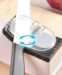 – Ngoài khay mài dao, sản phẩm còn thiết kế thêm khay mài kéo tiện lợi, phù hợp với mọi loại dao kéo có trên thị trường