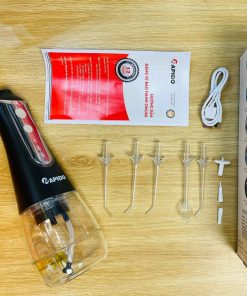 - Tăm nước cầm tay thiết kế nhỏ gọn sử dụng công nghệ phun nước dạng tia mảnh dễ dàng len lỏi vào từng kẽ răng lấy đi mảnh vụn thực phẩm, mảng bám mà không làm hở khe răng như sử dụng tăm tre truyền thống. Giúp việc vệ sinh răng miệng trở nên dễ dàng hơn. Sản phẩm được hỗ trợ 2 đầu vòi có thể sử dụng cho cả gia đình hoặc mang theo tới nơi làm việc