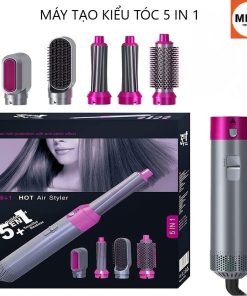 - Máy tạo kiểu tóc 5in1 trang bị động cơ kỹ thuật số với tốc độ quay lớn, quấn tóc bằng luồng khí để tạo kiểu mà không dùng nhiệt quá cao, giúp tạo nhiều kiểu tóc: Uốn, tạo sóng, duỗi, sấy. Đi kèm máy tạo kiểu tóc 5in1 là bộ phụ kiện với các đầu uốn, đầu sấy, lược chuyên dụng mà không làm khô tóc.