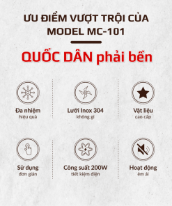 – Thân máy và cối xay bằng nhựa cao cấp dễ vệ sinh, dao inox 04 cánh sắc bén.