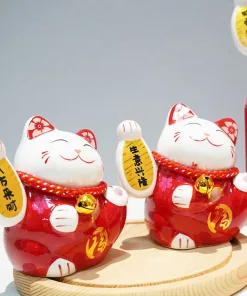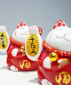 – Chất liệu: Mèo thần tài được làm từ gốm cao cấp – nung ở nhiệt độ cao, đảm bảo các tiêu chuẩn nghiêm ngặt nhất trong quá trình nung gốm sứ, đảm bảo độ sáng bóng và màu tươi mới, không bị bay màu theo thời gian.