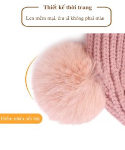 Chiếc mũ len quả bông sẽ mang đến cho bé cảm giác thoải mái dễ chịu khi đội mũ trên đầu, Ngoài việc giữ ấm cho đầu lúc mùa đông, nón len còn kèm khăn quàng cổ giữ ấm phần cổ cho bé tránh gió lạnh