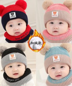 Mũ len quả bông kèm khăn quàng cổ cho bé 1-4 tuổi 56862